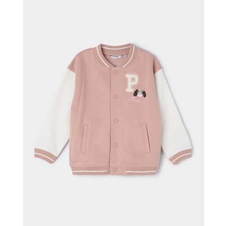 Тёплый бомбер для девочки Futurino в розовом цвете, с двусторонним принтом.