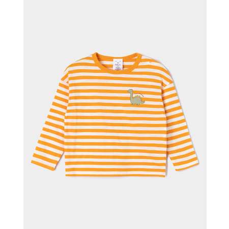 Полосатый лонгслив для мальчика BabyGо Trend, декорированный принтом с динозавриком.