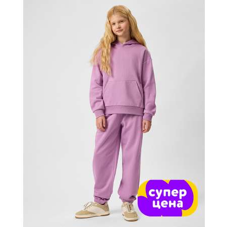 Однотонные брюки для девочки Futurino сиреневого цвета.