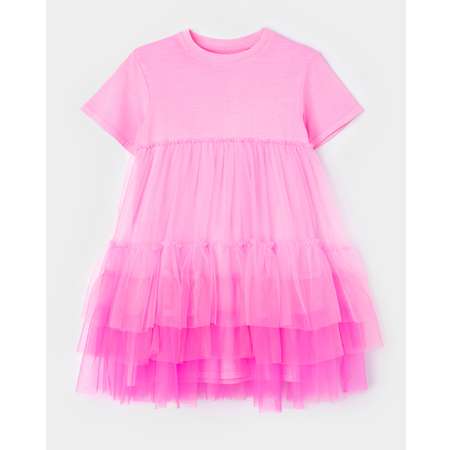Ярко-розовое платье для девочки Futurino Fashion, декорированное пышной ярусной юбкой с градиентом.