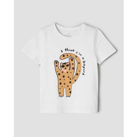 Белая футболка для девочки Futurino, декорированная цветным принтом с леопардом.
