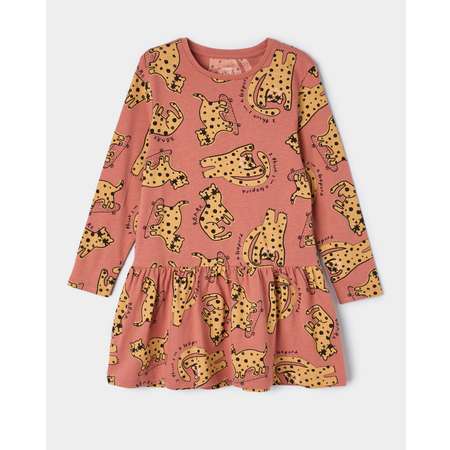 Коралловое платье для девочки Futurino, декорированное принтом с леопардами.