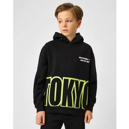 Чёрное худи для мальчика Futurino с яркой надписью "Tokyo".