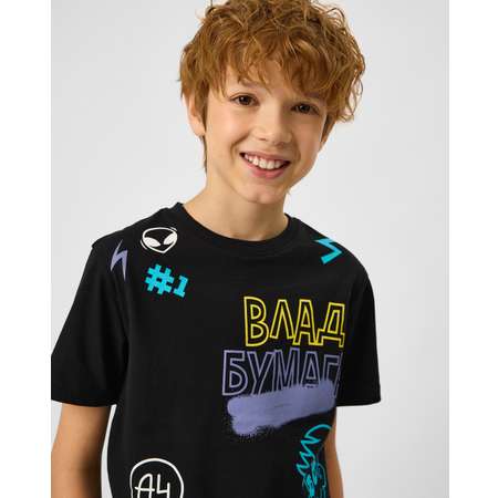 Чёрная футболка для мальчика А4 с ярким принтом "Влад Бумага".