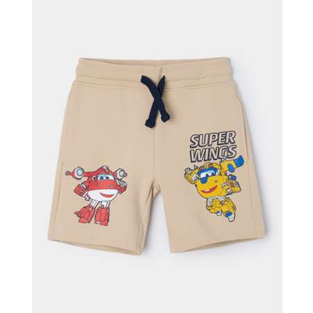 Бежевые шорты для мальчика Super Wings с красочным принтом.