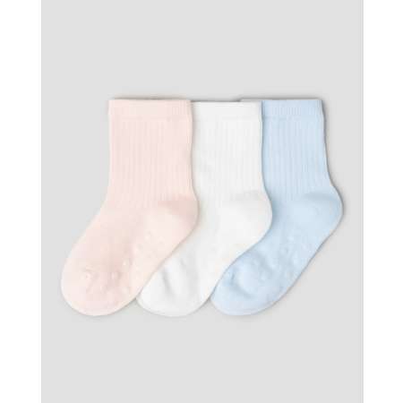 В комплекте BabyGо три пары однотонных носков для девочки - белые, розовые и голубые.