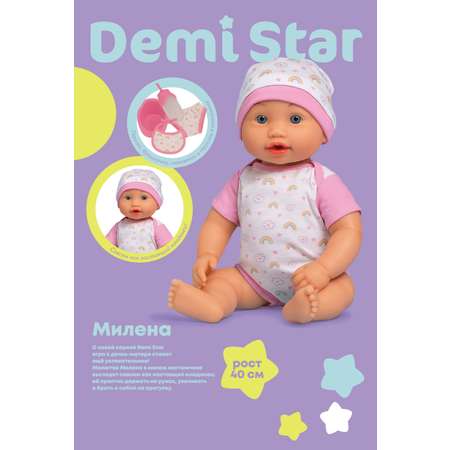 Познакомьтесь с Миленой — очаровательной малышкой из серии Demi Star, с которой игра в дочки-матери станет ещё интереснее. Она выглядит совсем как настоящий младенец: у неё милое личико, подвижные ручки, ножки и голова, а рост — целых 40 см!