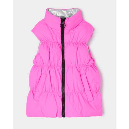 Двусторонний стёганый жилет для девочки Futurino Fashion в ярко-розовом и серебристом цвете.