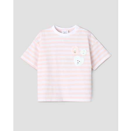 Футболка для девочки BabyGо Trend в розовую полоску с объёмным принтом в виде нашивок.