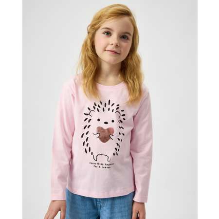 Розовый лонгслив для девочки Futurino, декорированный принтом с ёжиком.