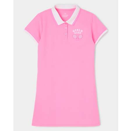 Яркое розовое платье-поло для девочки Futurino Fashion с вышивкой "Girls club".