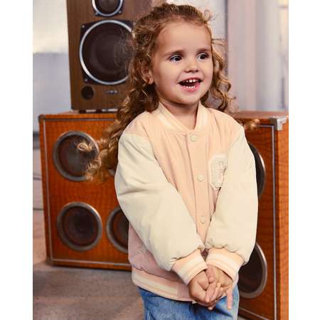 Куртка-бомбер для девочки BabyGo в розовом цвете, с объёмной нашивкой.