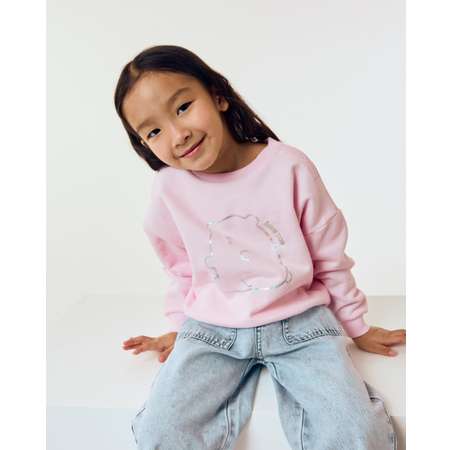 Свитшот для девочки BabyGo Trend розового цвета, декорированная голографическим принтом с мишкой.