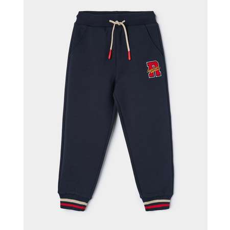 Тёмно-синие брюки для мальчика Futurino с декором в виде объёмной нашивки.