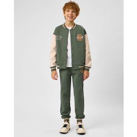 Брюки для мальчика Futurino в цвете хаки, с декором в виде объёмной нашивки.