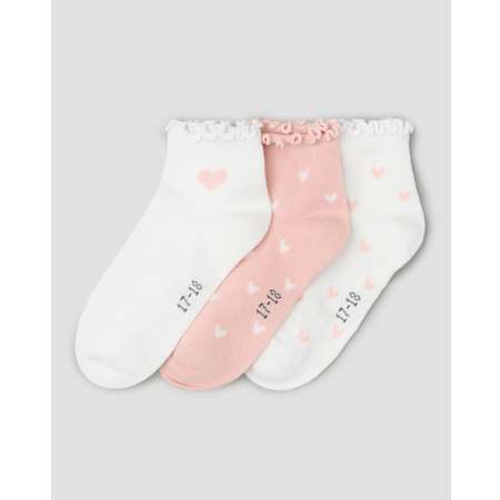 В комплекте Futurino три пары носков для девочки с сердечками - белые и розовые.