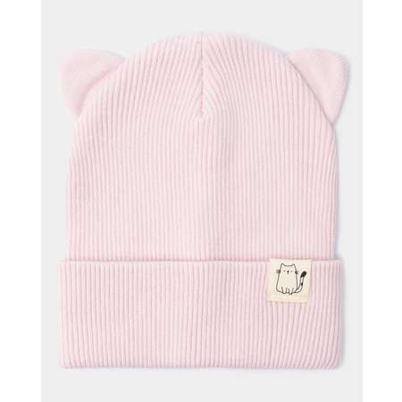 Шапка для девочки Futurino в нежно-розовом цвете, с ушками. Декорирована нашивкой.