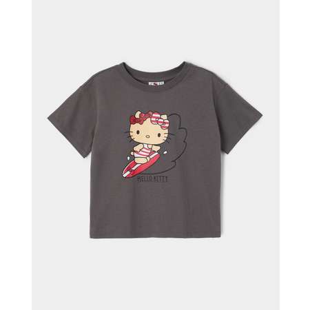 Тёмно-серая футболка для девочки Hello Kitty, декорированная цветным принтом с блёстками.