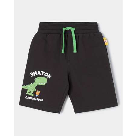 Тёмно-серые шорты для мальчика Три кота с цветным принтом "Знаток динозавров".