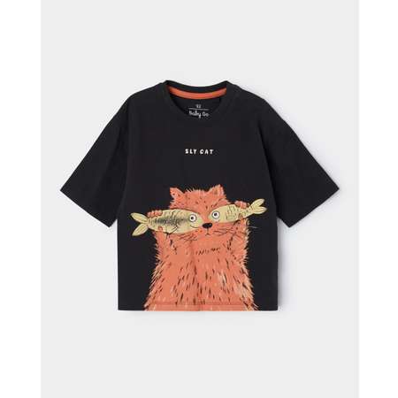 Тёмно-серая футболка для мальчика BabyGо с забавным цветным принтом "Sly cat".