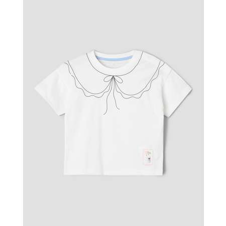 Белая футболка для девочки BabyGо Trend с принтом в виде отложного воротничка.