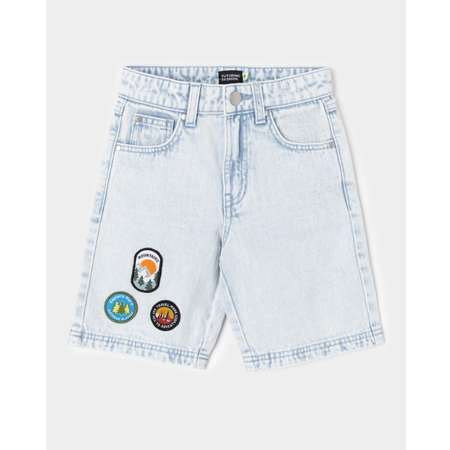 Джинсовые шорты для мальчика Futurino Fashion, декорированные цветным нашивками.