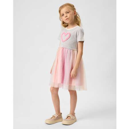 Платье для девочки Futurino с пышной цветной юбкой, украшенной блёстками, и объёмным декором в виде сердца.