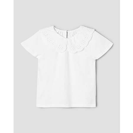 Белая футболка для девочки Futurino, декорированная отложным воротником с вышивкой.