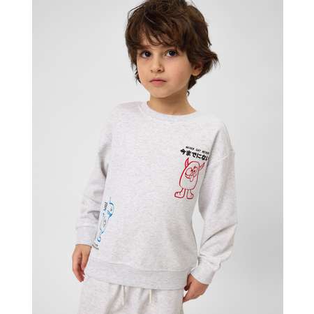 Светло-серый меланжевый свитшот для мальчика Futurino, декорированный цветным принтом.