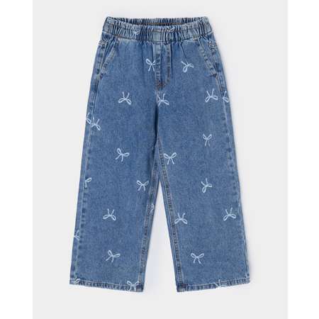 Широкие джинсы для девочки Futurino, декорированные принтом с бантиками.