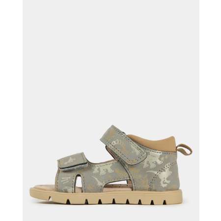Серые сандалии для мальчика Tombi, декорированные принтом с динозаврами.