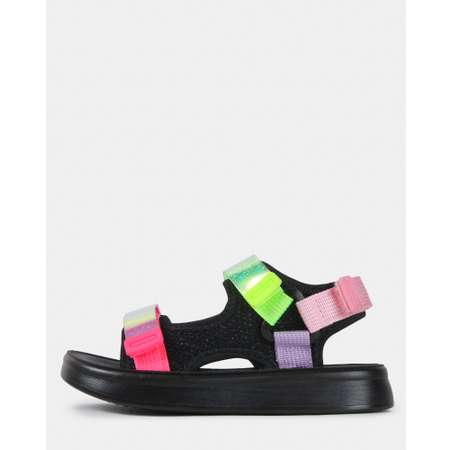 Чёрные сандалии для девочки Futurino с яркими блестящими ремешками.
