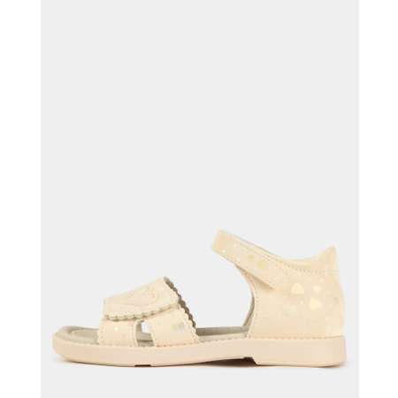 Бежевые сандалии для девочки Futurino с блестящим принтом и объёмными элементами в виде сердечек.