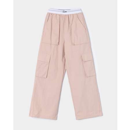 Текстильные широкие брюки для девочки Futurino розового цвета, с накладными карманами.