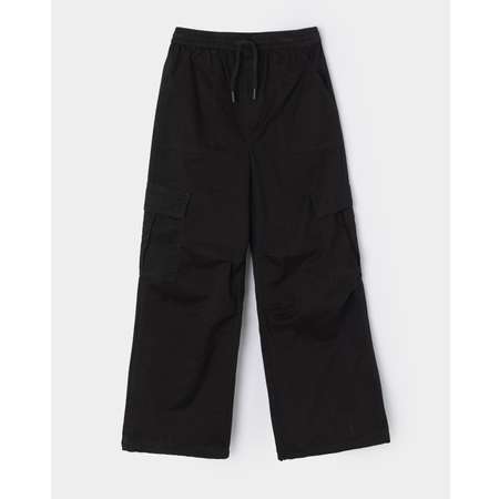 Текстильные широкие брюки для девочки Futurino чёрного цвета, с накладными карманами.