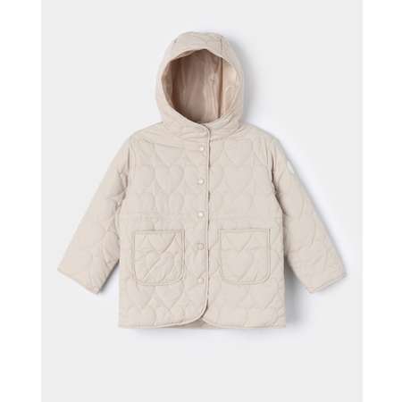 Демисезонная стёганая куртка для девочки Futurino в бежевом цвете, с нашивкой на рукаве.