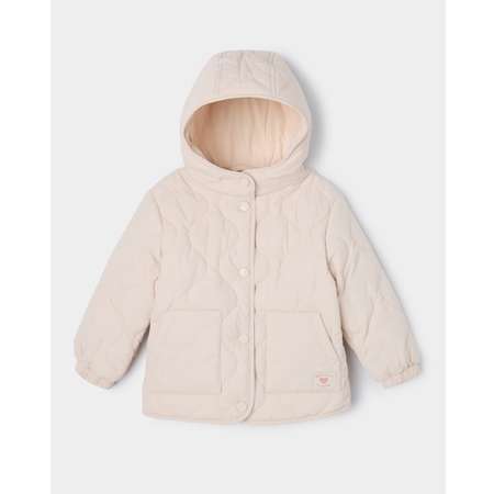 Демисезонная стёганая куртка для девочки BabyGo в бежевом цвете, декорирована нашивкой.