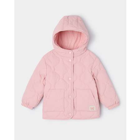 Демисезонная стёганая куртка для девочки BabyGo в розовом цвете, декорирована нашивкой.