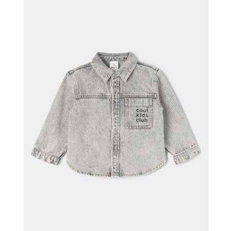 Джинсовая рубашка для мальчика BabyGo серого цвета с надписью "Kool kids club".