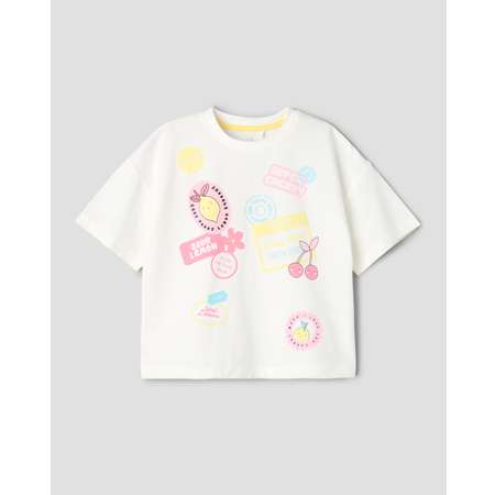 Белая футболка для девочки Futurino Fashion с летним цветным принтом.