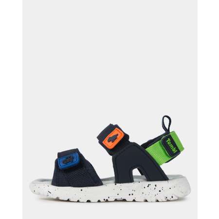Текстильные тёмно-синие сандалии для мальчика Tombi с яркими декоративными элементами.