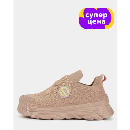 Бежевые кроссовки для девочки Jomoto из эластичного дышащего текстиля. Декорированы нашивкой.