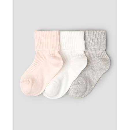В комплекте BabyGо три пары однотонных носков в рубчик для девочки - розовые, белые и серые.