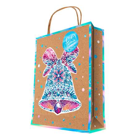 Пакет подарочный новогодний Феникс Презент Колокольчик из крафт-бумаги 18*23*10см