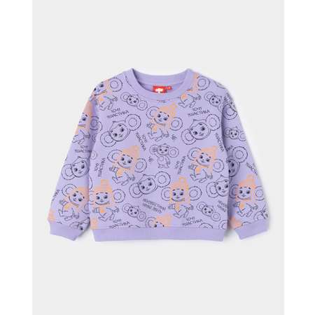 Сиреневый свитшот для девочки, декорированный принтом с весёлым Чебурашкой.