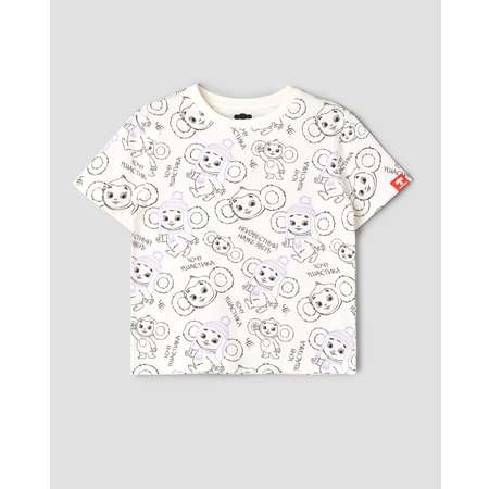 Футболка для девочки в молочном цвете, декорированная принтом с весёлым Чебурашкой.