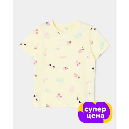 Жёлтая футболка для девочки Futurino с цветным принтом "summer".