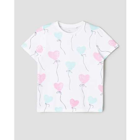 Белая футболка для девочки Futurino, декорированная цветным принтом с воздушными шариками.