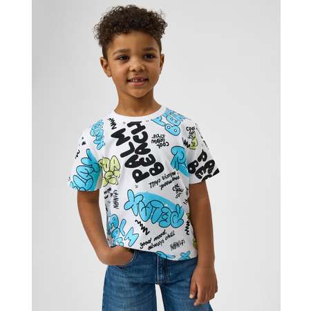 Белая футболка для мальчика Futurino с цветным принтом в стиле граффити.