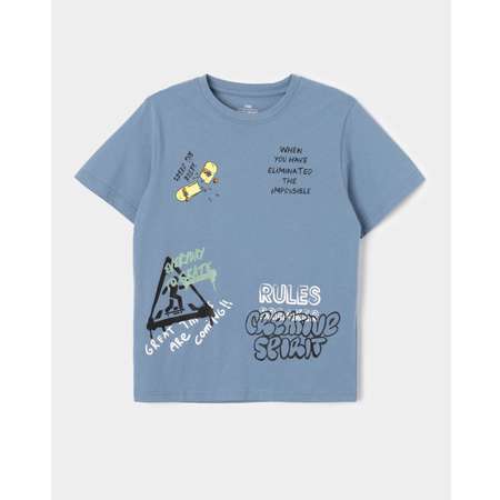 Синяя футболка для мальчика Futurino с цветным принтом в стиле граффити.